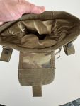 ich verkaufe einen Dump pouch in der Farbe Multicam. Er verfügt über einen verstellbaren Gummizug, welcher verhindert, dass Gegenstände rausfallen können. Die Größe ist recht praktisch, passt einiges rein.
