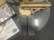 Mit dabei zwei Mid Caps, die Tan Ris und ein nagelneuer Magpul Tan Stock.