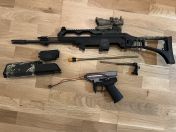 ich verkaufe meine wundervolle ursprünglich HW60-K (390€) mit dem von Hause aus eingebauten Begadi CORE EFCS. Ich wollte eine perfekte G36 schaffen. Es ist viel Zeit, viele Tests und viel Geld reingegangen, um dieses Endergebnis zu erzielen, welches Konstant ist und super Treffer Bild auf 60-70m zeigt. Ich spiele nicht mehr und jemand anderes soll mit der Spaß haben und soll nicht nur als Wanddeko dienen. Sie läuft konstant mit 1.77J +/- 0,02 (wobei solche Abweichungen durch den Chronvorgang entstehen können) mit einer M120 Feder. Die Waffe hat ein super Ansprechverhalten und durch diverse Anpassungen wurde die Abnutzung verringert.