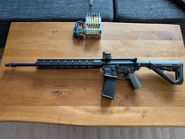 Der upper passt nur zu LM4 nicht zu Mega arms. Alles dabei was auf den Bildern zu sehen ist, also kein bolt carrier und kein charging handle, nur upper mit rail, Outerbarrel innerbarrel hopup unit und die kac flipups.