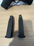 Dazu gibt es 2 Magazine die ebenfalls gebraucht sind mit Schrammen die Dichtungen müssen neu da die Magazine Gas verlieren