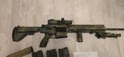 Ich verkaufe hier meine VFC 417 GBBR mit dem Wunderschönen 20" Sniperkit. Im Angebot enthalten sind die 417 welche voll funktionsfähig ist inklusive 4 Magazine ( alle Dicht und neue Dichtungen lege ich noch mit dazu) den originalen Handguard und eine Tragetasche lege Ich ebenfalls mit dazu. Sie ist ungefähr 3 Jahr alt und wurde vor gut bespielt. Sie ist ein absoluter Hingucker und hat das absolute Rückstoß-Feeling. Ich habe die gechront mit ca. 1.5 Joule, bei offenem Npas erreichen wir 2.8 Joule und die Magazine fassen 20 Schuss und etwa für 60 Schuss Gas (25 Schuss bei offenem Npas). Den Charging Handel habe ich anfang des Jahres neu Gemacht und Sie hat von mir eine Hop-Up Kammer, so wie einen 6.04 Crazy Jet Barrel 510mm von Maple Leaf bekommen. Wie zu sehen hat der Vorbesitzer dem guten Stück einen Paintjob verpasst den ich feiere, sind durch mich natürlich Abnutzungsspuren hinzugekommen.