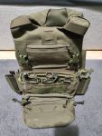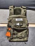 Platz für 11 M4 Magazine, zwei große Pouches an der Front für Kleinkram, auf der Rückseite ist ein Rucksack für Trinkflaschen, HPA Flaschen oder BBs. Ebenso ist der Plattenträger mit Schulterpolster und Plastikplatten ausgerüstet.