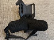 Entsprechend ist es ungenutzt und somit neuwertig. Das Holster kommt mit dem abgebildeten gepolsterten Beingurt und alternativen kurzen Schrauben für die Montage ohne Gurt.