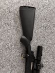 verkauft wird sie mit allen Anbauteilen wie Zielfernrohr und Schalldämpfer sowie 2 Magazinen und BB‘s