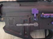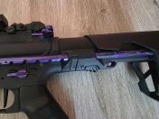Jetzt hier noch nen schönes ding. Abgesehen von der optik die schon gut mitgenommen ist durch 2 vorbesitzer wo einer auch den paintjob mit den lila akzenten gegen hat. Der Vorbesitzer hatte auch im inner was gemacht aber ich habe leider keine Ahnung mehr was. Ich kann damit Zumindest so schnell schießen wie ich auch triggern kann :D
