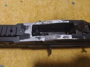 Ich habe sie vor etwa 4 Jahren hier im Marktplatz gekauft. Der Vorbesitzer sagte mir, er hat einige Teile ausgetauscht und auch eine Stelle am Magazin-Schacht mit Knetmetall repariert (siehe Bilder).