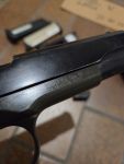 Hier kommt eine KJW 1911 unter dem Hammer. Funktion ist gegeben, schießt aber nicht besonders gut.