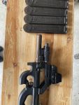 Servus an alle P90 Liebhaber, ich möchte mich von meiner P90 trennen. Verkaufe sie wie Abgebildet. Ich habe sie viel einem Jahr meinem besten Kumpel abgekauft. Er hat sie von Novritsch. Waffe in einem sehr guten aber gebrauchten Zustand. Laser Dummy Schali und red Dot von Begadi. Mit 28er bbs 1,6 Joule. 6 Mags sind auch dabei.