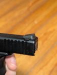 Moin verkauft wird hier eine eine TM G17 Gen.3 die komplett stock ist bis auf den verbauten Sight Tracker Slide mit Bowie Tactical Concepts und Glock Markings. Der Lower hat schon so einige Schuss gesehen während der Schlitten kaum Gebrauchsspuren hat. Die Magazine hingegen weisen alle deutliche Gebrauchspuren auf.
