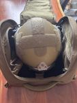 Angeboten wir ein Helm mit komplett Ausstattung. Das Head-Set ist ein Dummy, Helm wurde überwiegend für Bilder machen benutzt. Aufgrund des Alters weiß ich nicht mehr all zu viel 😅 mein Kopf ist 58cm gemessen und der Helm passt 1a mit den Softpads drin.