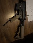 Hier verkaufe ich meine MK18 von Phylax sie hat eine Kytera- HPA Unit. Es gibt Gebrauchsspuren am Schaft durch die Benutzung eines Slings ansonsten ist sie in einem guten Zustand. Die Airsoft muss mit ca. 140 Psi betrieben werden das sie genügend Energie hat. Die Kytera ist eine Mechanische Unit daher brauch man keinen Akku.