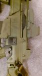 Verkaufe hier mein G36 hpa die Polarstar Kythera schlummert in einem Jing gong body der einen Paintjob bekommen hat. Der Griff hat ein Stippling erhalten für einen besseren Grip ich habe eine IGL für das G36 gefertigt. Die Energie ist von 1-1,8+ Joule Reichweite 70 Meter effektiv. Verbaut sind ein Tnt S+ Air cushion 6,03 6,035 mm 300 mm mit einem Tnt bucking 60° Hopt problemlos 0,32g in Verbindung mit der Maxx hop up unit GCY. Mit verkauft wird der Novritsch Schalldämpfer, Eotech 522 clone, 5 Magazine eins Davon von Pts neuwertig inklusive!