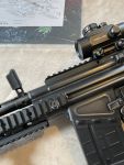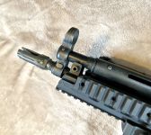 Hier ein Spezialumbau ursprünglich war es eine Standard G3, die ich selbst zur G3 K umgestaltet habe. Der Akku findet der Optik und Einfachheit halber in der Akkubox bequem Platz. Der handguard wurde durch ein CNC Alu Handschutz ersetzt, dieser musste in das Stahl Gehäuse verschraubt werden, bitte beachten ! Siehe Fotos