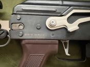 äusserlich wurden Zenitco Teile in Tan(under Handguard und PT-1 Stock) verbaut,sowie den Fire selektor von Retro Arms und die RIS Schiene am Visier.