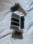 Ich biete sie im Set mit 4 dichten Magazinen von Verschiedenen Herstellern an. Außerdem sind ein 3D gedruckter Ständer und ein Hartschalenholster für Rechtshänder dabei.