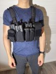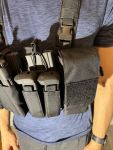 Wie ihr sehen könn, finden bis zu 6 M4 Magazine und 2 Pistolenmagazine Platz + eine kleine Universalpouch.