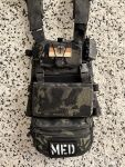 Angebracht ist ein TMC Lightweight Chest Rig, ein Minimap pouch und ein Fanny Bag, alles in Multicam Black, sowie eine M4 Mag Pouch von TMC, im Crye Style, ebenfalls Multicam Black.