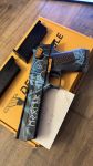 Bemalt mit Acrylfarben und versiegelt mit matten Schutzlack. Mechanischer Abrieb ist normal, bekommt dann den Charme wie die beliebten "csgo" Waffen.