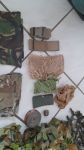 Einige Tarnnetz Stücke, Jute in verschiedenen Farben, Stoffreste, Gurte und was eben noch auf den Bildern zu sehen ist.