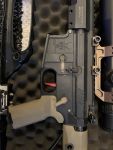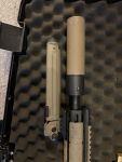 Zu erwähnen ist noch das der Innenlauf in den Schalldämpfer hineinragt weshalb ich den Schalldämpfer mit Madenschrauben dauerhaft direkt am Mündungsfeuerdämpfer befestigt habe. Auch sollte man beachten das der verbaute Feuerwahlhebel von Magpul nicht wie üblich 90* dreht sondern nur 60*