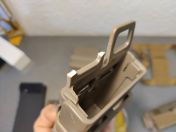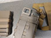 2x FMA m4 fast mag pouches. Das linke ist ok, das rechte hat ein abgebrochen es Teil und ein Riss an der Seite, welches geklebt wurde. Und starke Gebrauchsspuren.