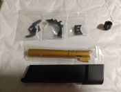 Das gezeigte Zubehör (Goldener outerbarrel und Kleinteile sind neu. Barrel noch in OVP. Adapter für silencer ist auch dabei- allerdings etwas verkratzt.