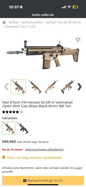 Marktplatz > ASGs über 0,5 Joule > Gewehre/MPs > ASGs Gas, CO2 > SCAR