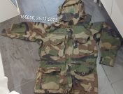 Taschen: 4 vorne aufgesetzte Taschen und 2 Napoleontaschen, die bis unter die Schultern gehen. Hinten eine große Gesäßtasche, die mit einer naht in 2 asymmetrische Taschen unterteilt ist. Eine kleine Schulterrasche am linken Ärmel.