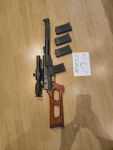 wirklich ein schönes Sammlerstück und ein absolutes beast als Dmr. Die G&G Vintorez wurde nur im Jahr 2014 hergestellt was sie zu einer absoluten Rarität macht . Es funktioniert alles Perfekt von der Elektronik bis zu den Features. Bei einer Airsoft Firma hab ich den Akku Anschluss umlöten lassen das man herkömmliche Akkus verwenden kann. Außerdem ist die Hopup kammer und das Gummi getauscht!