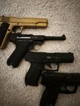 Zwei Mal benutzt, Energie 1J, hat blowback, nutzt Gas oder CO2 Kapseln, hat extra Lage Paintjob in Gold um dem ganzen nen used look zu geben, 140€ im Paket
