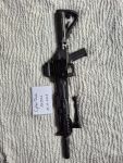 Die Waffe mit den abgebildeten Anbauteilen, 2x 11,1 V Akkus, 4 Mags.