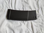 Ebenfalls habe ich massiven Gummi an die Schulterstütze geklebt, damit die Airsoft im Anschlag nicht verrutscht.