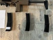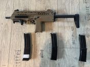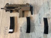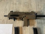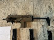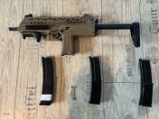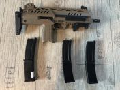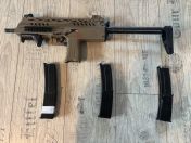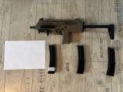 Ich verkaufe hier eine SMG-8 GBR Farbe TAN GBB mit insg. 3 Magazinen also 2 Ersatzmagazinen. 1 Magszin ist leider etwas undicht, die anderen beiden sind dicht. Gewicht mit Magazin 2,29 Kg (leeres Magazin) und 1,77 Kg ohne Magazin. Gekauft wurde die SMG-8 bei Begadi als B-Ware. Die SMG-8 war einmal auf dem Feld und sonst wurde sie nur zuhause zum Zimmershooting benutzt. Zuletzt habe ich sie vor einem Jahr geschossen, da lief sie super. Dann war sie länger in der Vitrine. Das will ich hier ausdrücklich nochmal erwähnen.