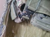 Mittels Fastex Schnallen wird der Ghillie seitlich am Belt sowie oben zugemacht und befestigt.