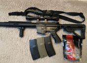 Als Zubehör gebe ich drei MidCap Magazine , eine 1-Punkt-Schlinge, eine über die Hälfte gefüllte Tüte 0,28 BB von Lonex, den Frontgriff und das montierte 4X-Scope (eher einfach, aber macht seinen Job).