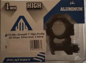 Ich biete ein Doppelpack UTG High Profile QD Ringe (Max Strength für 1" bzw 25,4mm Zielfernrohr Durchmesser ), für 22mm Picatinny (2 Stück pro Packung).