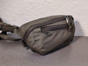 Die Bauchtasche ist etwa 20*7,5*10cm groß und hat vorne ein Einschubfach.