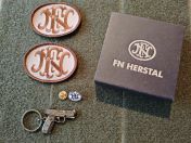 Verkaufe dieses FN Herstal Set bestehend aus 2x Patch Tan, 1x Pin und FN 509 Schlüsselanhänger!