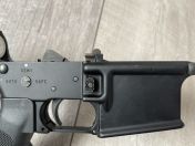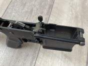 - Ino Lower, leider B-Grade, mit bekannter Ausfräsung am Bolt Catch, und leider auch ein kleiner Gußfehler am Mag-Catch-Button. Beim Trigger Pin fehlt die Sicherung und fällt beim betätigen heraus. Der Block mit dem safety detent/spring fehlt, der selector daher auch lose. Sonst soweit vollständig, der Stock ist ein einfacher AEG Teil, vermutlich von VFC.