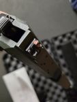 Wie auf den Bildern zu erkennen ist, befindet sich eine Beschädigung an der Kimme. Diese ist rein optisch und beeinträchtigt die Funktion nicht.