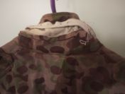 Flecktarnjacke in gutem gebrauchten Zustand. Unter dem Kragen ist die Naht aufgegangen was aber das tragen der Jacke nicht beeinträchtigt. Der Druckknopf an der linken Brusttasche ist kaputt. Größe M