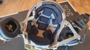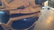 Helm coyote-farben mit Bezug für Klett oder Tarnmaterial. Voll funktionsfähig. Leichte gebrauchsspuren.