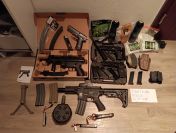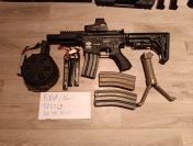 Huhu! Biete hier meine G&G cm 16 Firehawk mit 2 Akkus ,elektrischem Drummag(mit Ersatzakku) ,3 blech Highcaps ,einem gesprungen aber funktionierenden Holopoint Visier ,einem Tracer und einem Handgriff/ Zweibein zum Verkauf an.
