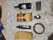 Zu der Waffe gibt es ein Midcap Magazin, den HPA Regulator, HPA Schlauch, eine 0,2 l und 0.8 l Druckluftflasche, jeweils 200bar, inklusive Molle Tasche.