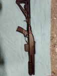 Die Waffe läuft gut, der Repetierhebel, sprich Handgard, hackt manchmal etwas, beim Magazinadapter werden die BBs nicht gehalten wenn man das Magazin raus nimmt. Es passen auf jeden Fall, Ares, G&G, Krytec Magazine. Die original Klappe am Patronenlager wurde entfernt.