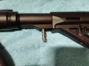 Die Waffe ist auf HPA und M4 Magazine umgerüstet, dafür würde das Einlassventil ersetzt und ein Adapter für M4 Magazine eingesetzt.