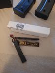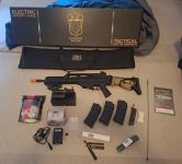 Das Sturmgewehr habe ich bei Begadi bestellt und umbauen lassen da der Haupthersteller nicht das gelbe vom Ei ist. Jetzt ist es das gelbe vom Ei, eigentlich betrifft es nur die Gassysteme. Es ist quasi plug&play, man bekommt dazu einen Lipo Akku, passendes Ladegerät mit Adapter auf Nimh, Zieleinrichtung im ACOG Style (mit Anleitung), Handgriff, Lanyard (Tragegurt) Schalldämpfer (noch eingepackt da ich nichts für Madenschrauben hatte) 3 Magazine a 90 Schuss (midcap), Reinigungsstab, Speedloader, 5000 Schuss 0.20g BB's + die 50 Stück die in der OVP drinnen waren. Anleitung und OVP ist auch vorhanden sowie die Rechnung auf der alles aufgelistet ist nochmal. Außer die Tragetasche die habe ich mal geschenkt bekommen (ebenfalls neu). Die gibts aber dazu.