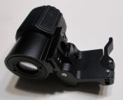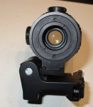Er lässt sich einstellen und zur Seite klappen, wenn man nur durch's Holo schauen möchte. QD-Montage.