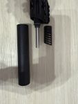 Das reddot und ein Magazin sowie der Schalldämpfer und die Mündungsfeuer bremse sind mit dabei.